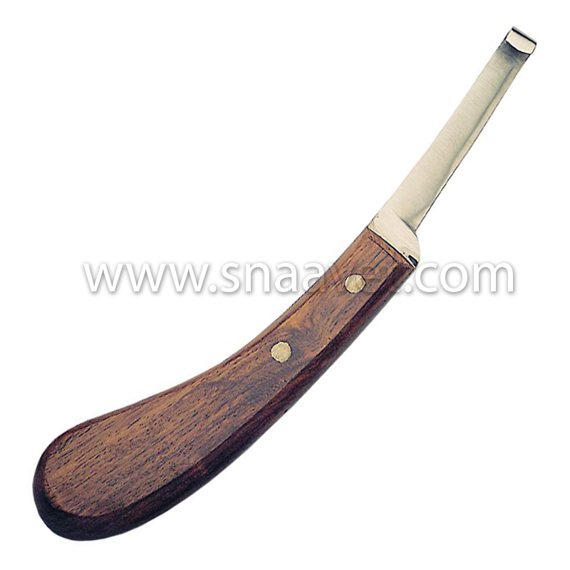 Hoof Knife Wooden Handle Left Hand, Single Edge with Narrow Blade