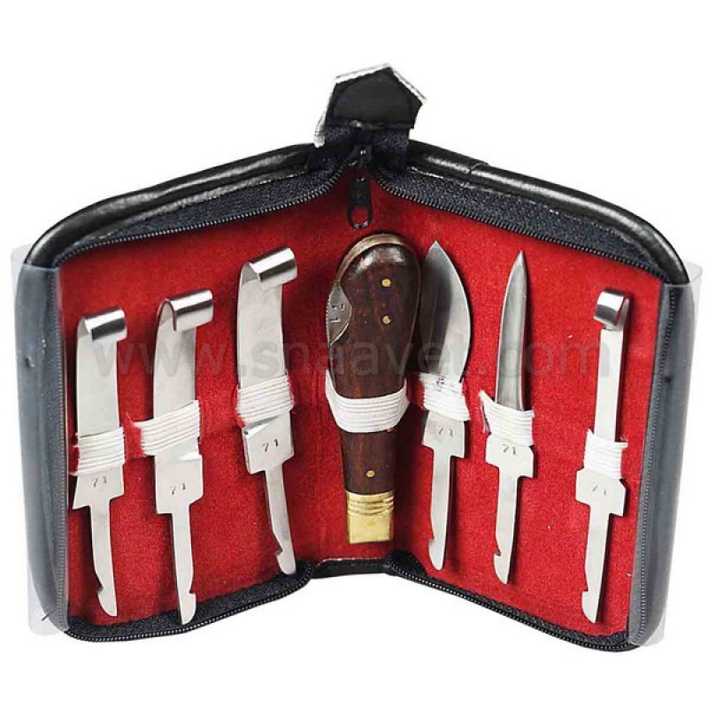Set of Hoof Knives, Six hoof knives are used with one handle by interchanging, Available in Case.